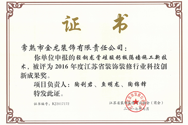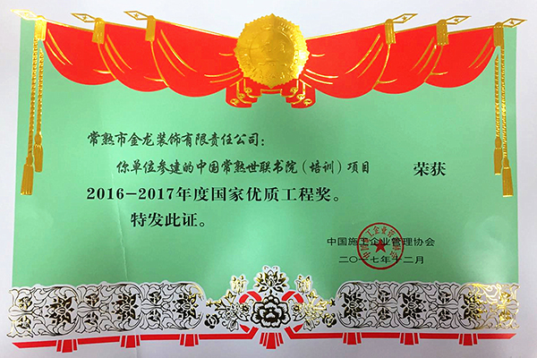 常熟市金龍裝飾有限責任公司始創(chuàng)于1992 年,在三十多個春秋光蔭中,公司依仗社會和政府的關懷扶持,通過全體金龍員工的精誠團結(jié)與潛心努力,堅持敬德守信,傾力精工創(chuàng)優(yōu),以實力筑基,用服務樹譽,一步一個腳印地壯大企業(yè)。發(fā)展至今,已具有國家建筑裝修裝飾工程專業(yè)承包壹級資質(zhì)、建筑裝飾設計甲級資質(zhì)、建筑幕墻工程專業(yè)承包壹級資質(zhì)、建筑幕墻工程設計專項甲級資質(zhì)、電子與智能化工程專業(yè)承包貳級資質(zhì)、消防設施工程專業(yè)承包貳級、建筑工程施工總承包、鋼結(jié)構(gòu)工程專業(yè)承包、建筑機電安裝工程專業(yè)承包三個叁級資質(zhì)以及特種工程(結(jié)構(gòu)補強)專業(yè)承包資質(zhì)的企業(yè);公司還順利通過了質(zhì)量管理、環(huán)境管理、職業(yè)健康安全管理三合一體系及工程建設施工企業(yè)質(zhì)量管理規(guī)范的專業(yè)認證;現(xiàn)為中國建筑裝飾協(xié)會常務理事單位,江蘇省裝飾裝修行業(yè)協(xié)會常務理事單位,蘇州市裝修裝飾行業(yè)協(xié)會副會長單位,中國建筑裝飾協(xié)會企業(yè)信用AAA級企業(yè)、江蘇省守合同重信用企業(yè)、蘇州市重合同守信用企業(yè)。